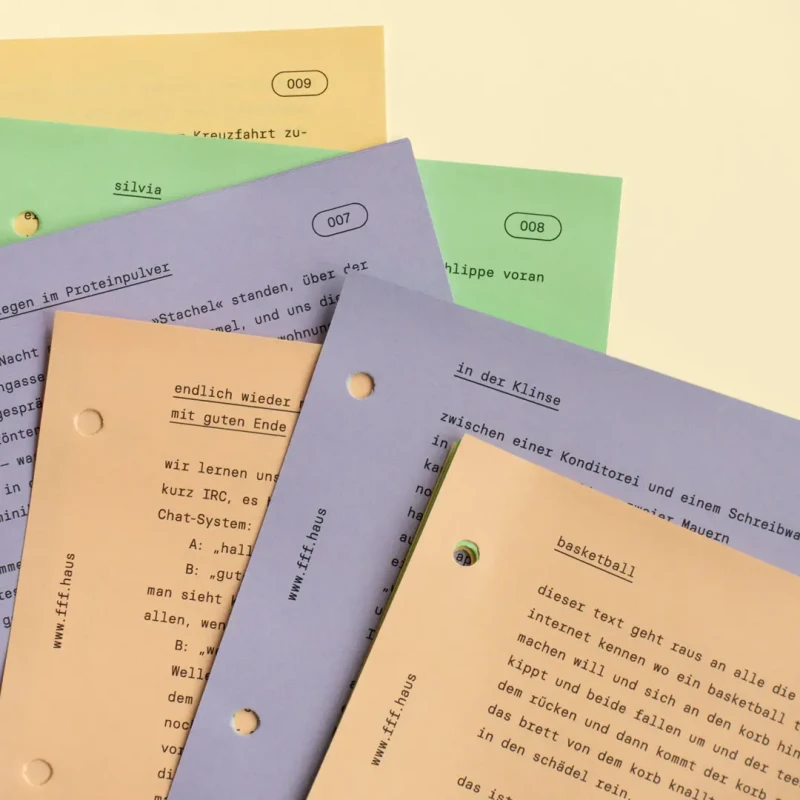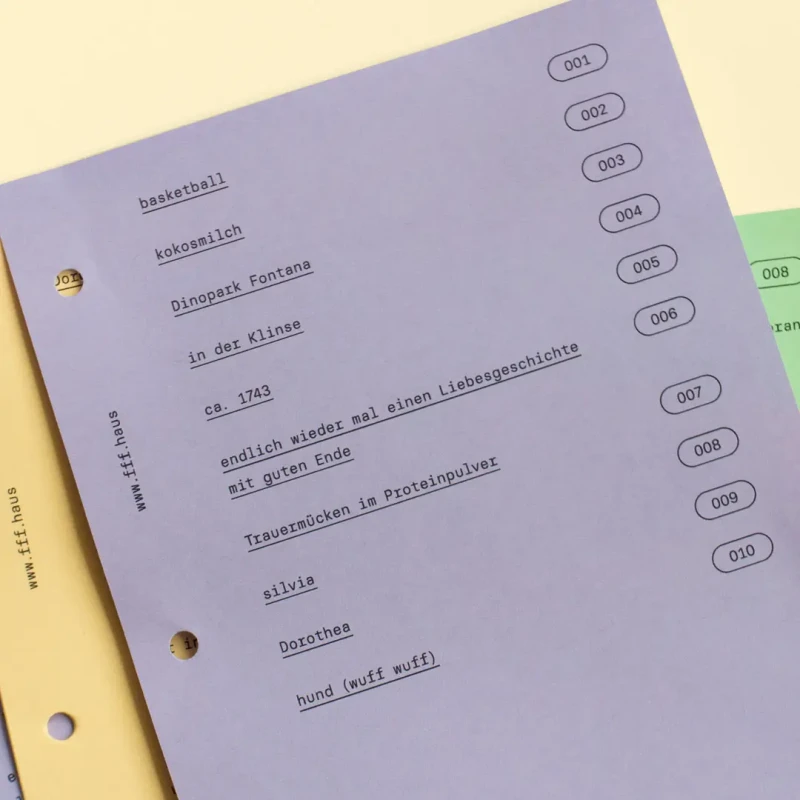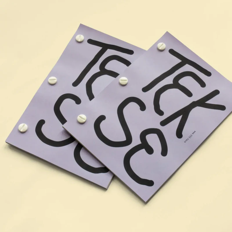 The compilation »Tekse« contains 10 selected short texts written by me, twisted together with white plastic book screws. this product is available in my store at store.fff.haus.