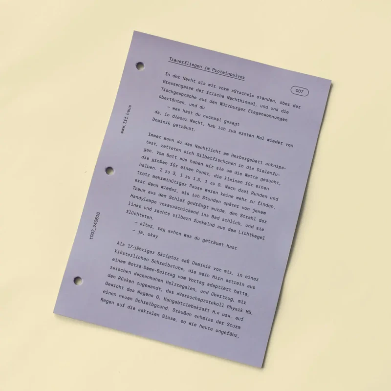 Die Sammlung »Tekse« beinhaltet 10 ausgewählte, von mir geschriebene kurze Texte, zusammengedreht mit weißen Kunststoff-Buchschrauben. dieses Produkt ist in meinem Shop unter shop.fff.haus erhältlich.